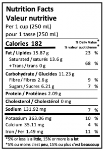Ingredients:  Love, sunshine, roasted Okanagan pumpkin, Okanagan Bartlett pears, filtered water, coconut milk, onion, olive oil, garlic, cinnamon, sea salt, nutmeg, ginger, cloves, parsley, oregano, rosemary, thyme, sage, basil, celery seed, marjoram.